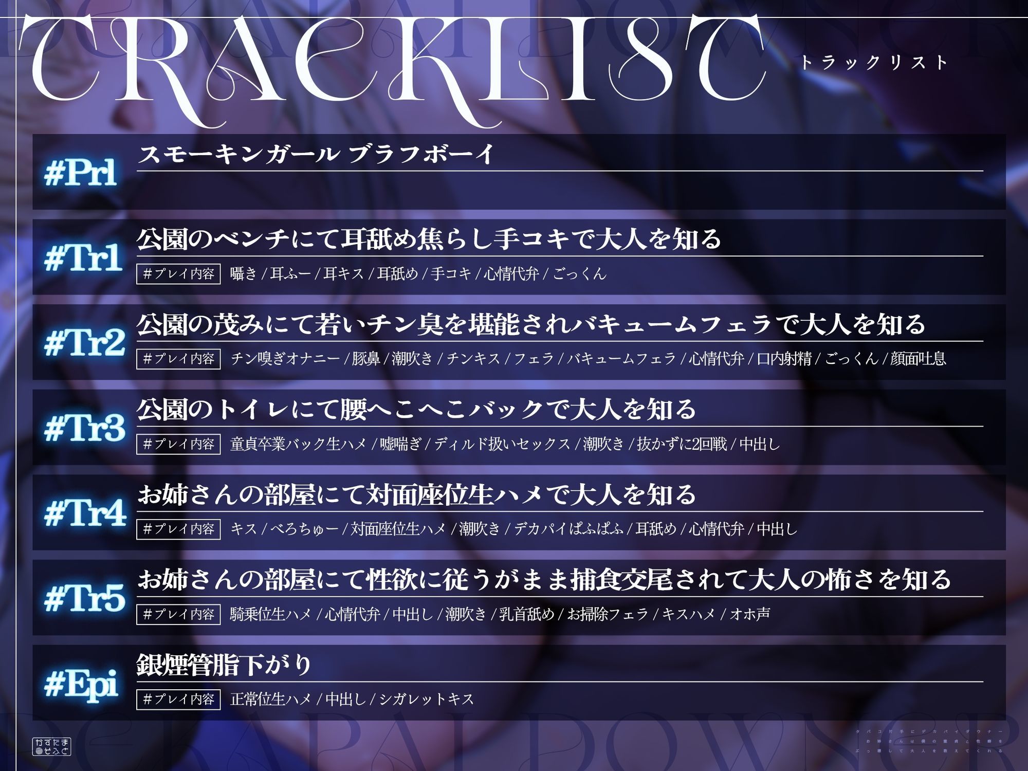 | ジャンル | 中出し 退廃・背徳・インモラル 言葉責め 色仕掛け 男性向け 成人向け 淫語 初体験 男性受け 年上 オホ声 ダウナー |